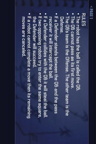 每40秒,您将机器人编程为运行,阻挡,通过,拦截和偷球,而对手也这样做!进入比赛后,坐下来观看两支球队同时进行编程。这是一场战略和智慧之战 - 您是否有能力超越对手并得分触地得分?